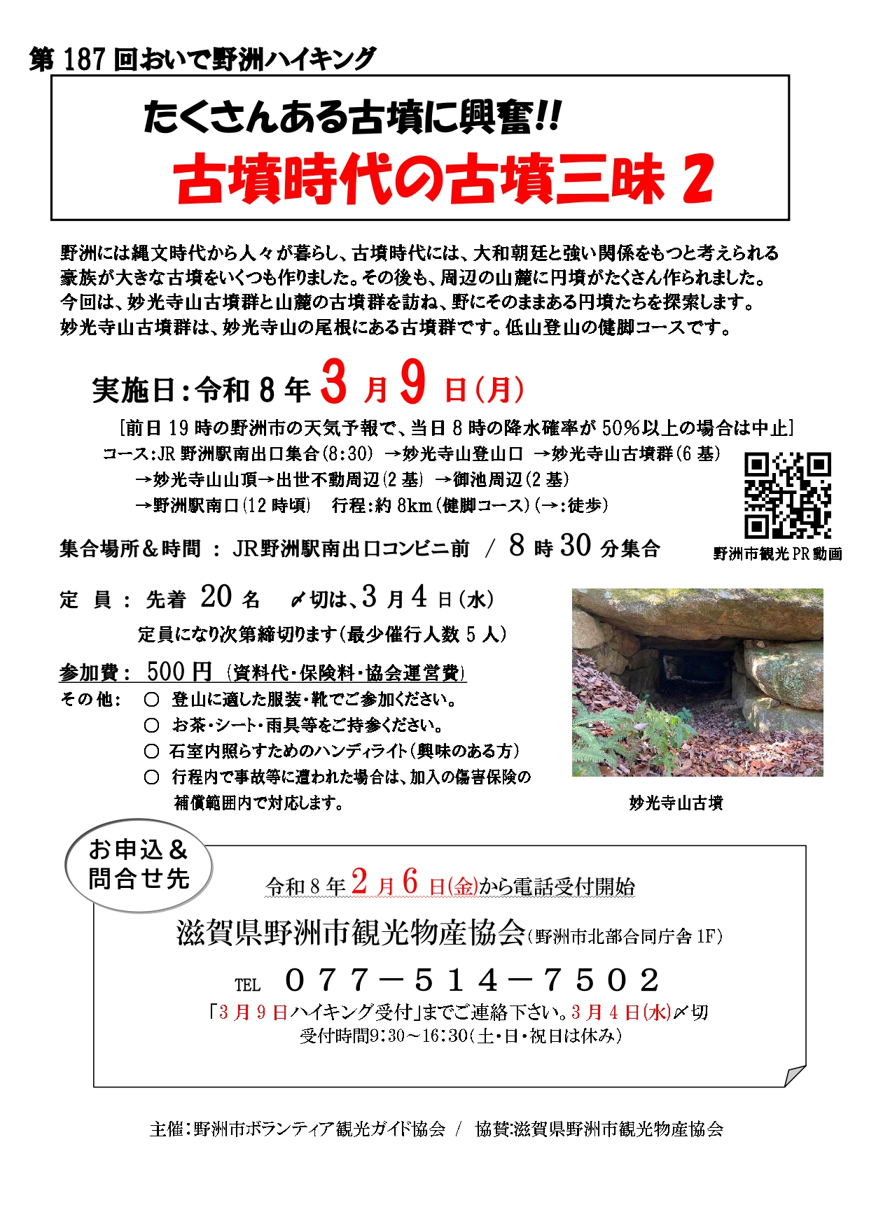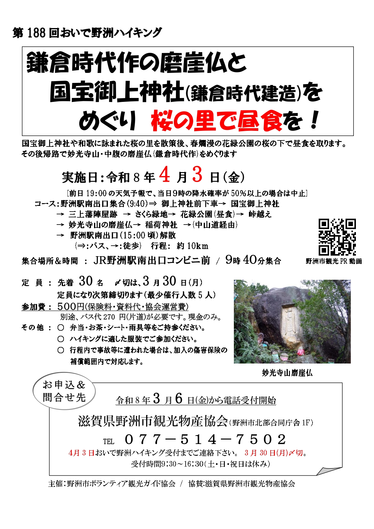 現在、野洲市ボランティア観光ガイド協会主催の「おいで野洲ハイキング」のお申込みを受け付けしております。