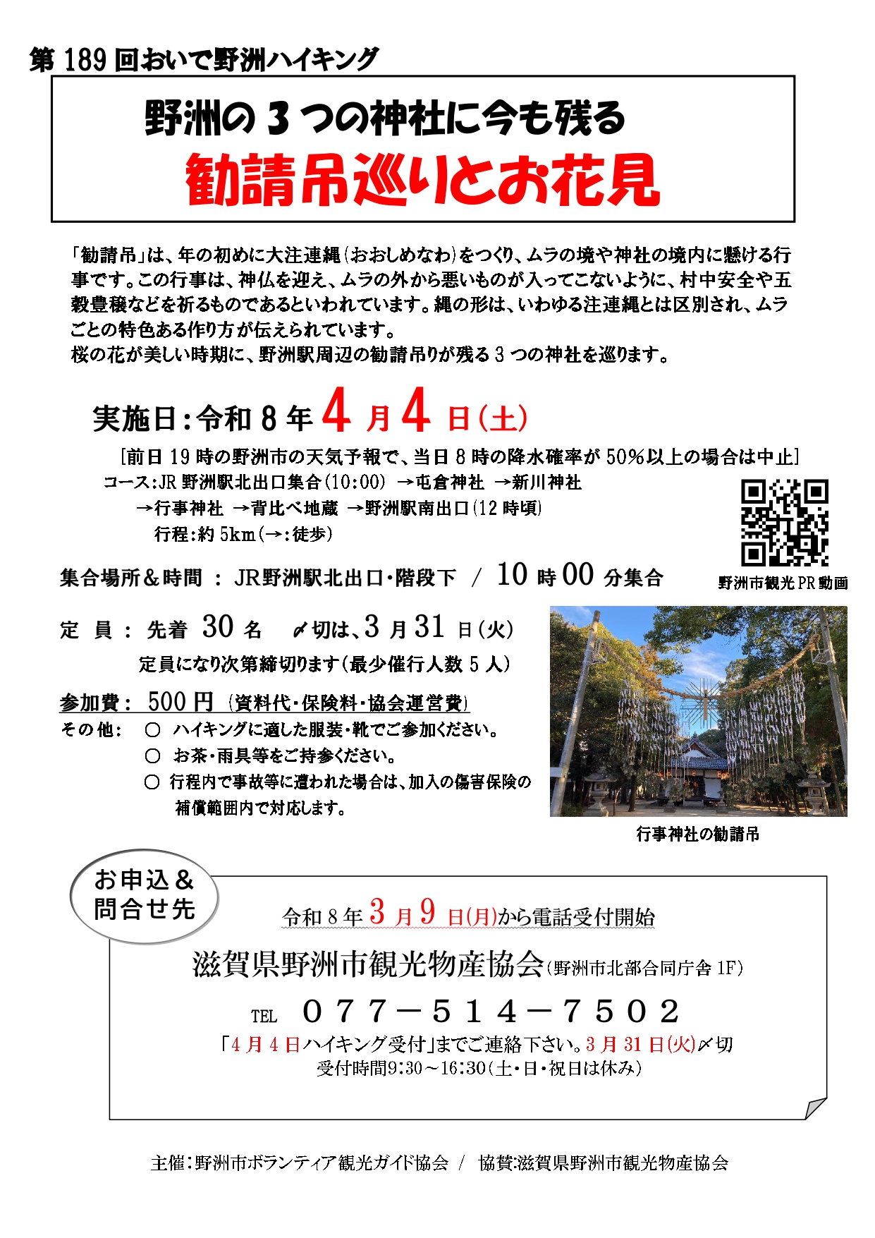 ④4月4日(土) 野洲の3つの神社に今も残る勧請吊巡りとお花見