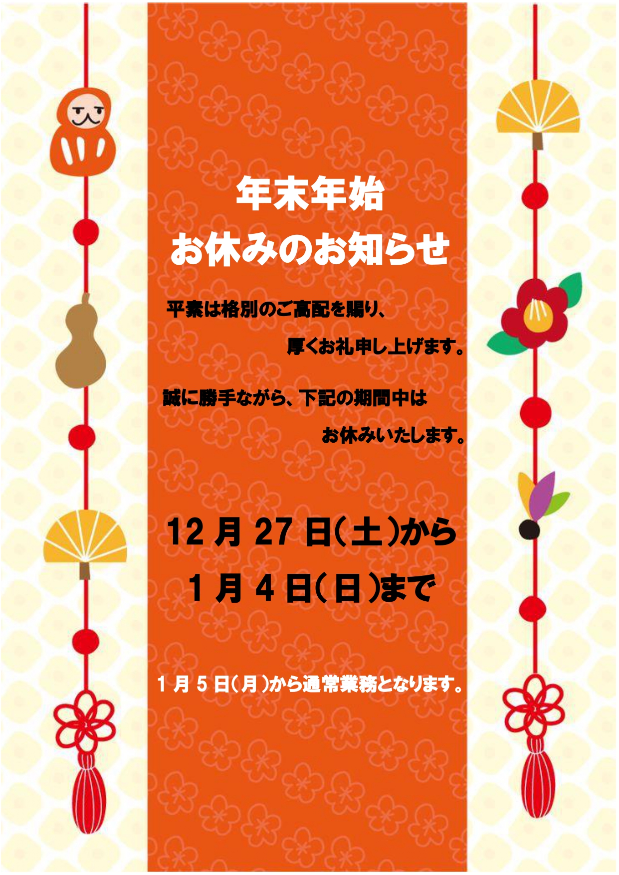 野洲市観光物産協会事務局~年末年始お休みのお知らせ~